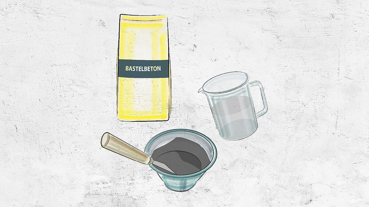 Gut zu wissen: Bastelbeton ist feiner als herkömmlicher Beton und eignet sich für filigrane Arbeiten. Zement trocknet schneller aus und muss schnell verarbeitet werden. Da er zu Rissen neigt, sollte etwas Quarzsand untergemischt werden.