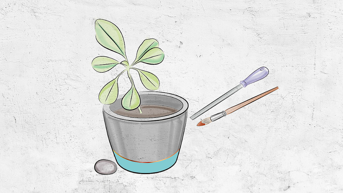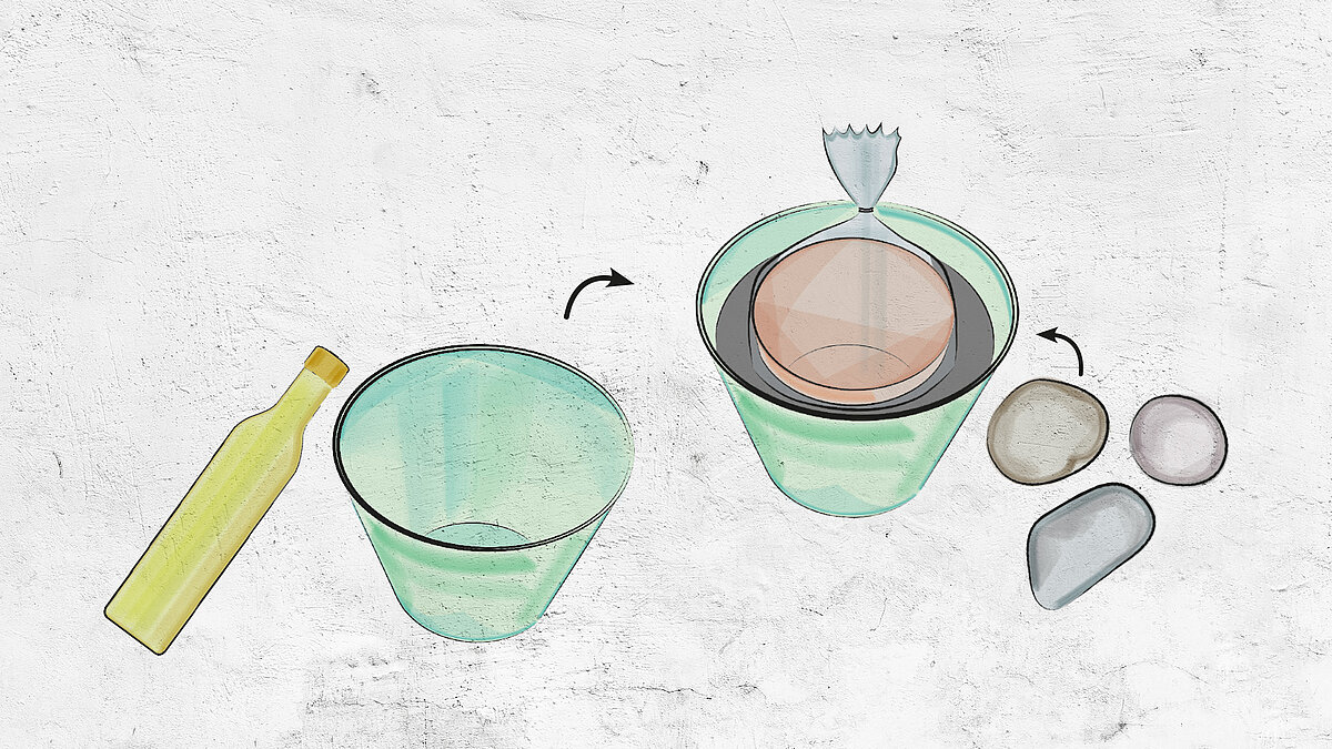 Beton dehnt sich beim Härten aus. Je unflexibler die Gießform ist, desto schwieriger lässt sich der Betontopf herauslösen. Für die kleinere Form eignet sich daher ein Blumentopf oder ein Joghurtbecher.