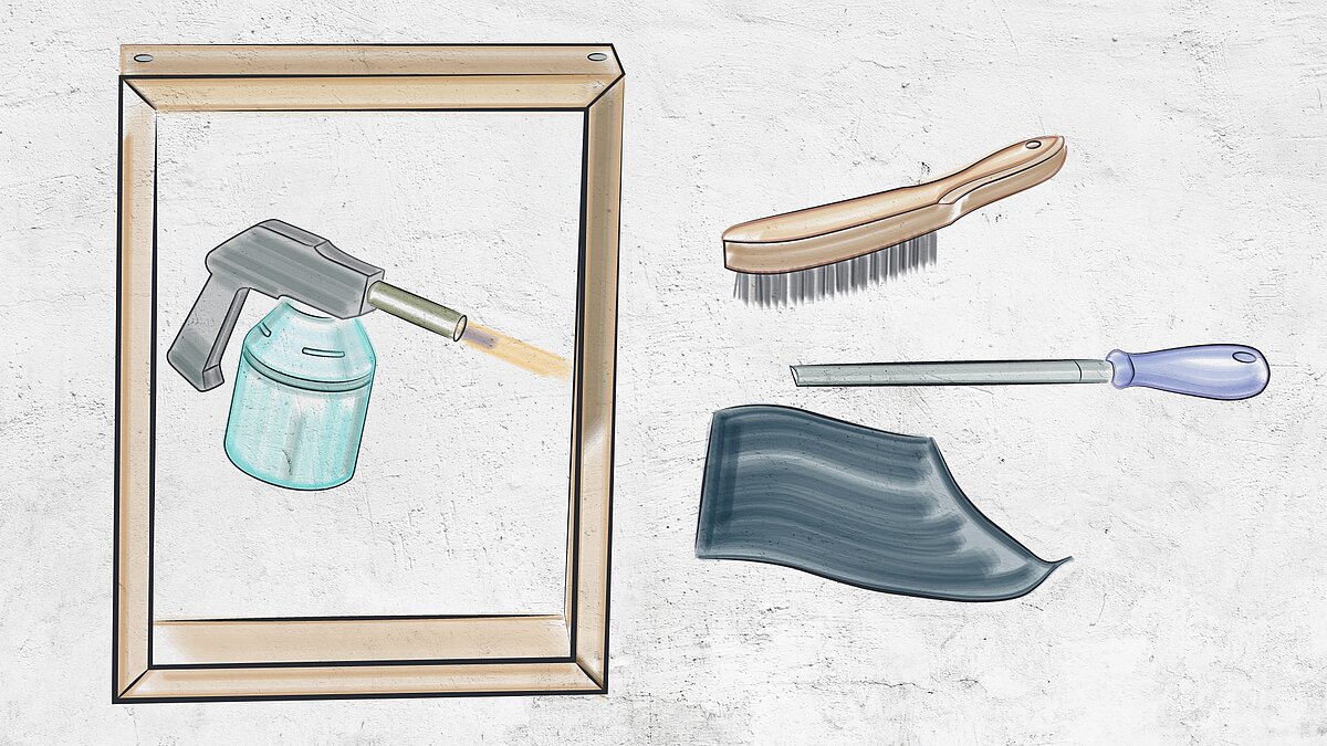 - Schrauben, Feile, grobes Schleifpapier oder Drahtbürste, kurze Nägel mit breitem Kopf
