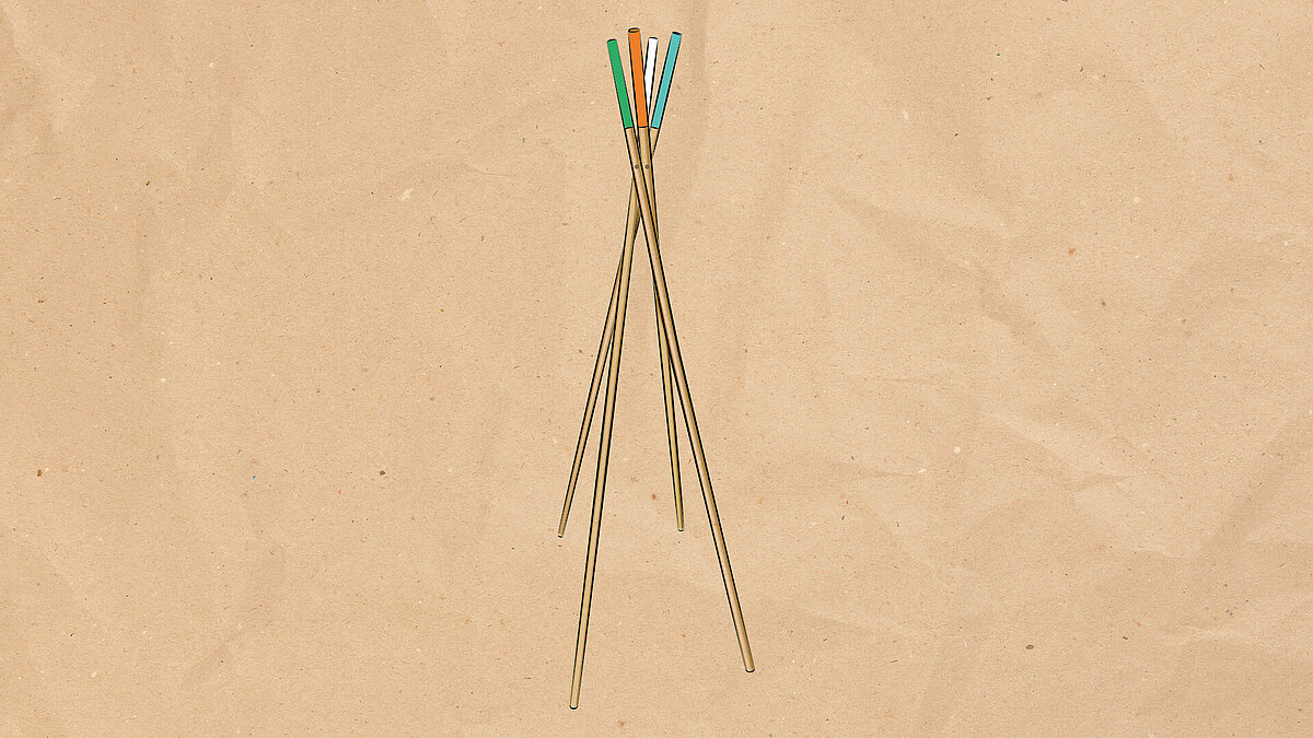 - Seil oder Band in ausreichender Länge, um alle Stäbe mehrfach zu umwickeln