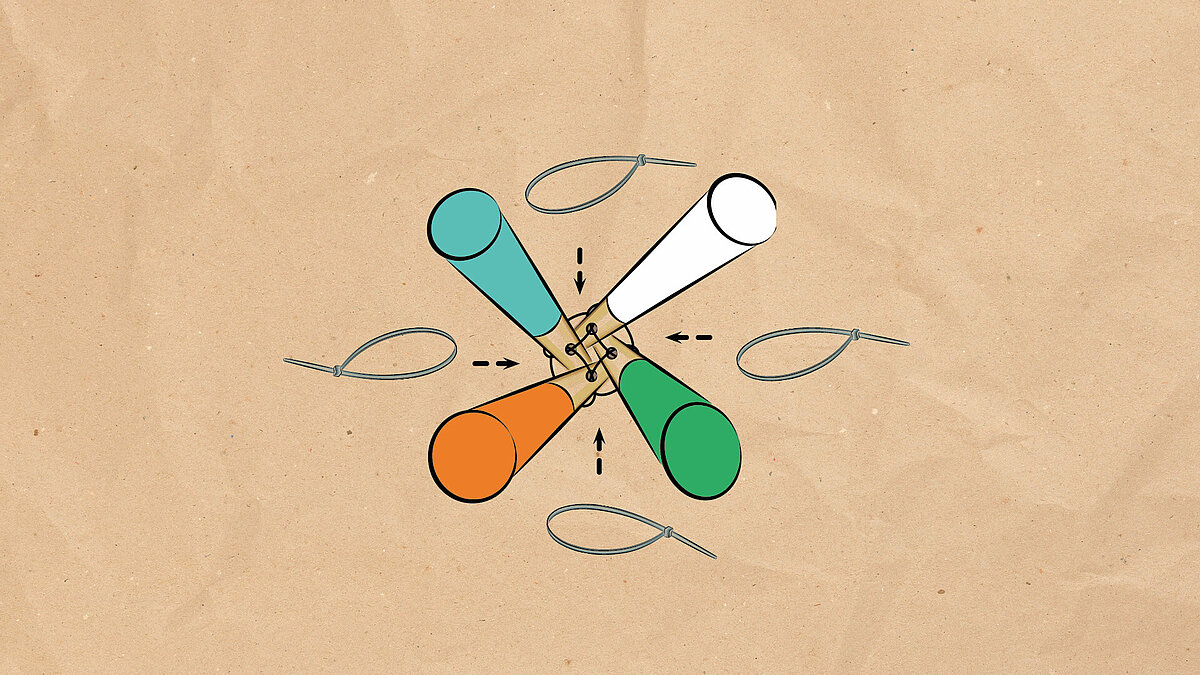- Alternativ die Stäbe mehrfach allumfassend umwickeln.