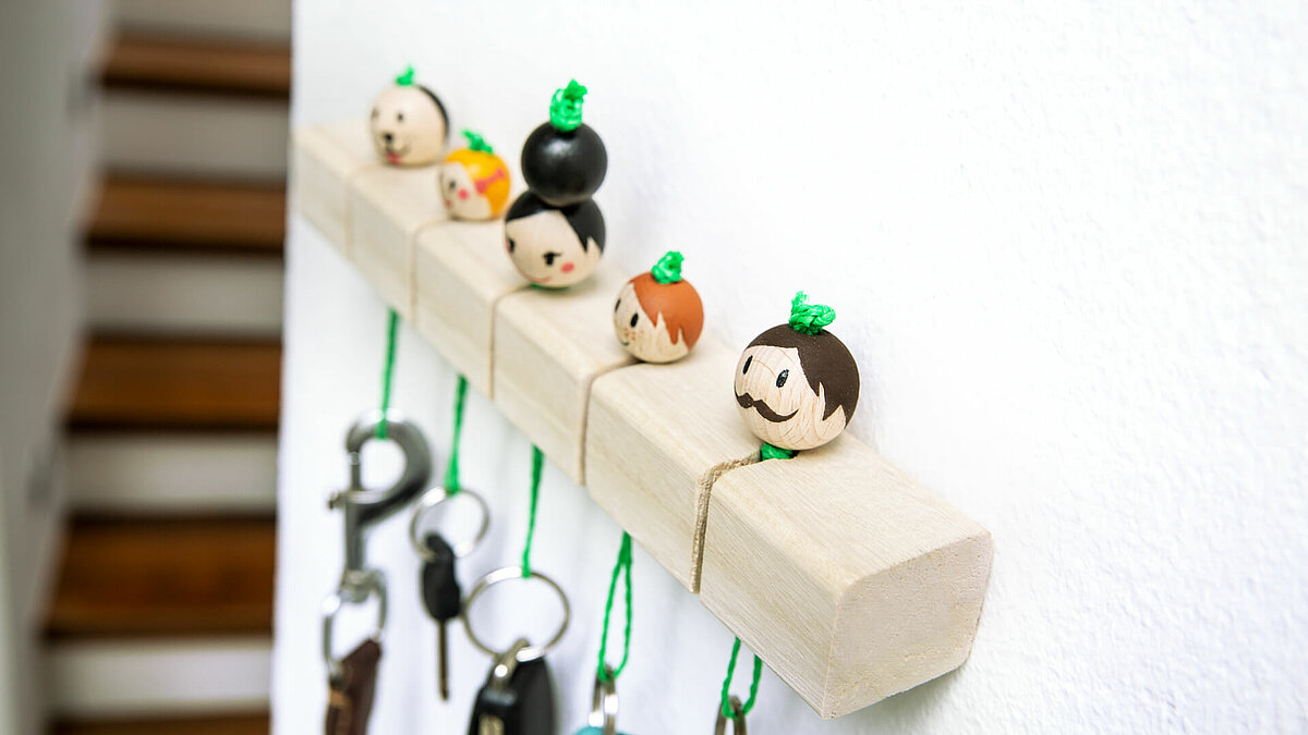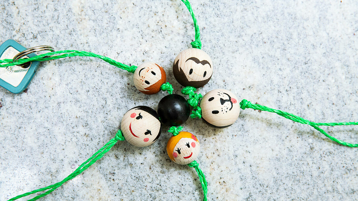 - naturbelassene, gebohrte Holzkugeln in zwei unterschiedlichen Größen