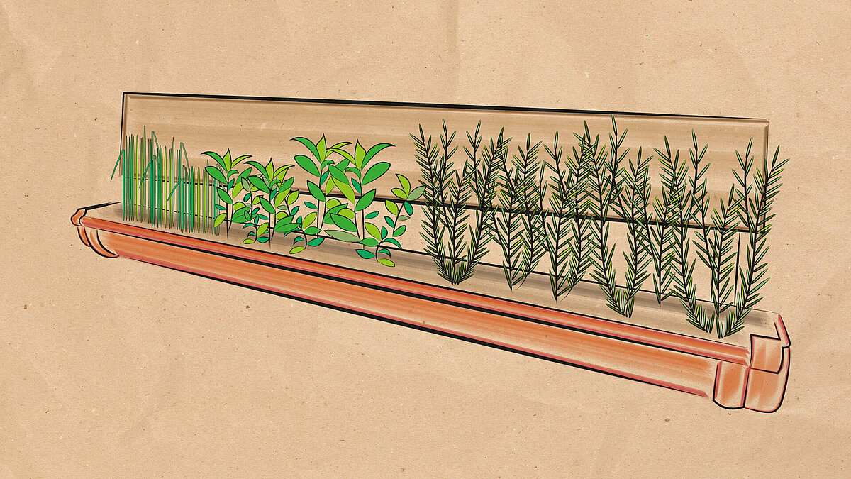 Eine Drainage am Rinnenboden beugt Staunässe vor. Hierfür eignen sich Tonscherben, Blähton oder Kieselsteine.