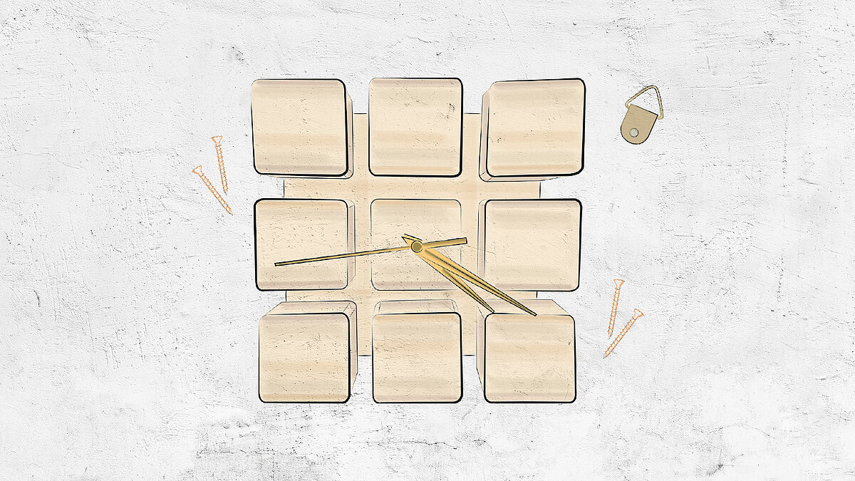 - Uhrwerk , z. B. 5,5 x 5,5 x 1,6 cm