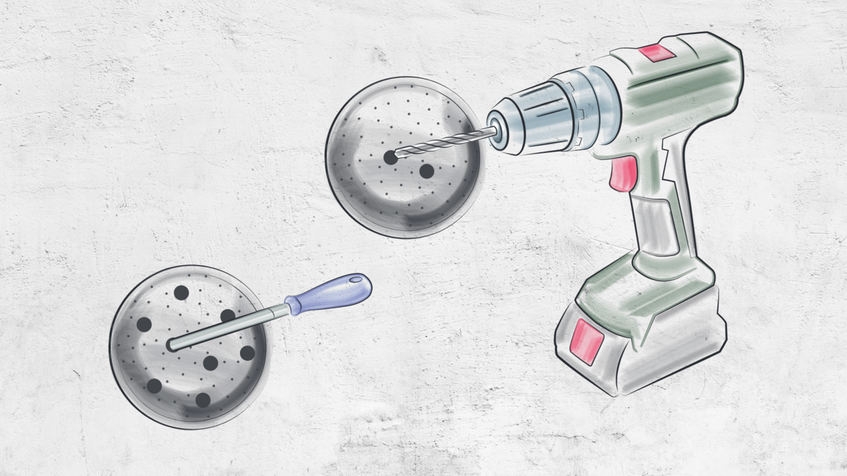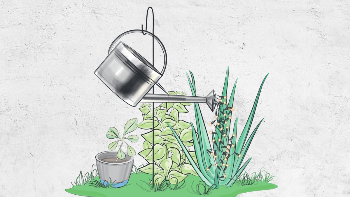 Bei einer Solar-Lichterkette ein Loch auf der Unterseite der Gießkanne bohren und das Stromkabel durchführen. Bei einer batteriebetriebenen Lichterkette das Batteriefach inwandig an der Oberseite festkleben.