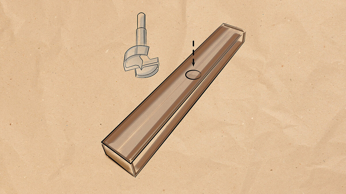- Bohrschrauber, Forstnerbohrer im Ø des Holzstiels, Schrauben