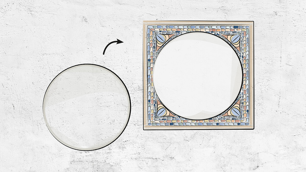 - 1 runder Spiegel, der kleiner ist als die Fliese